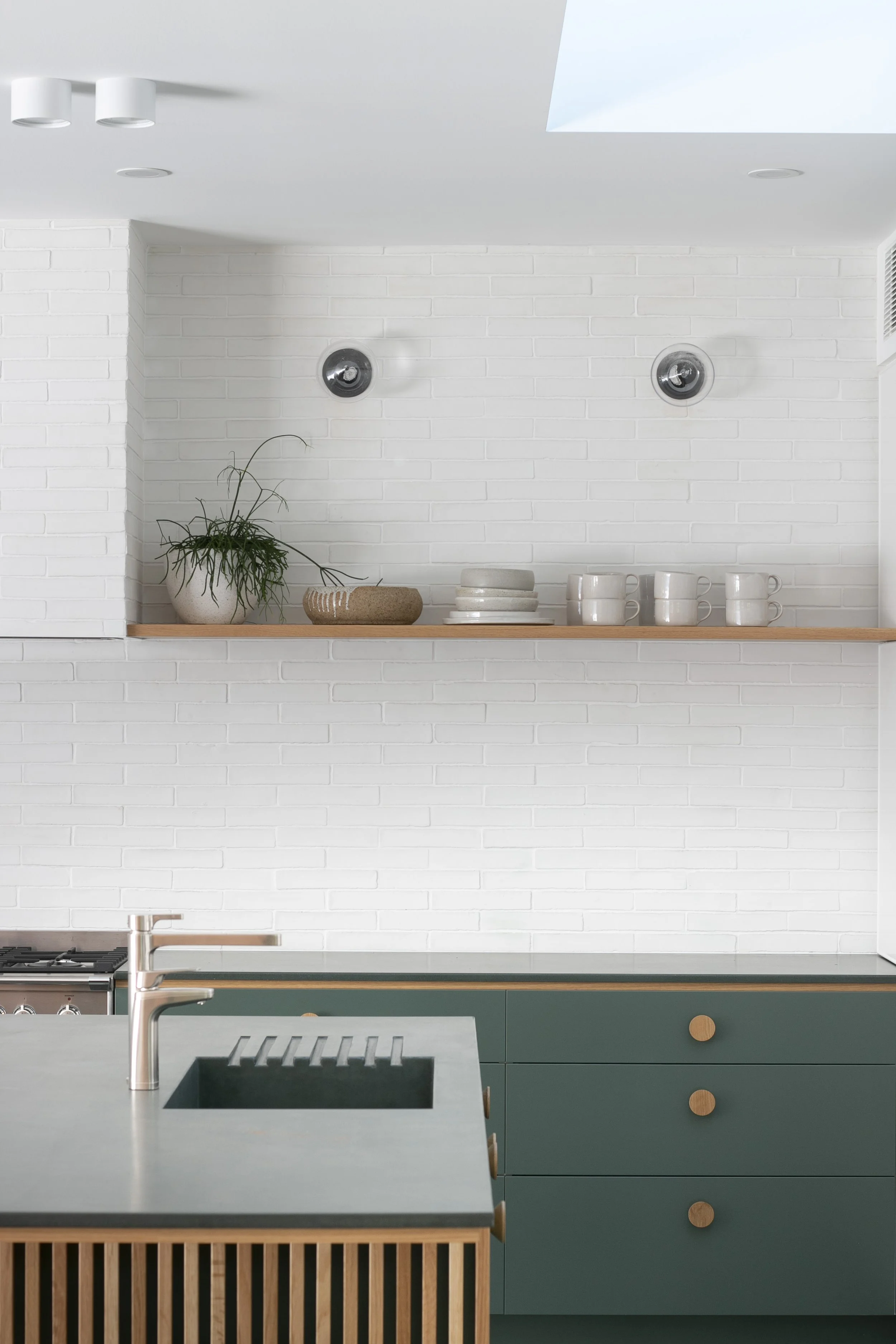 Concrete benchtops from Concrete Nation in 'Green Stone' — durable, textural and aging beautifully
