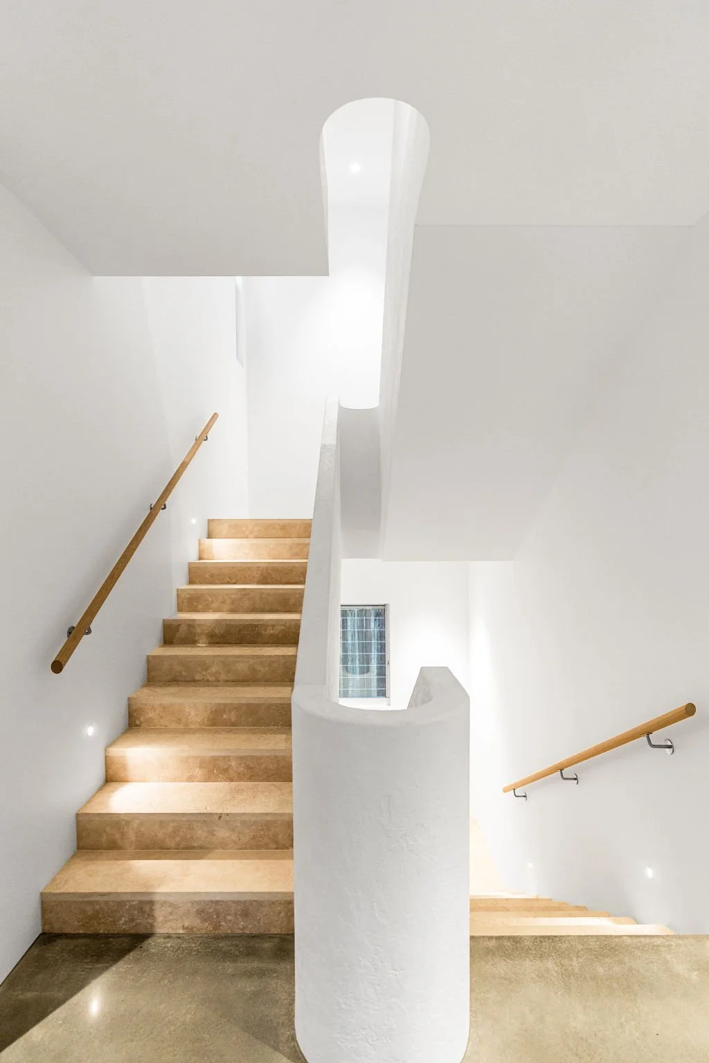 The homes levels are accessed via a true architectural gem- the curved staircase which connects the 3 levels and acts like a gorgeous corkscrew, letting in light all the way down to the lowest floor.